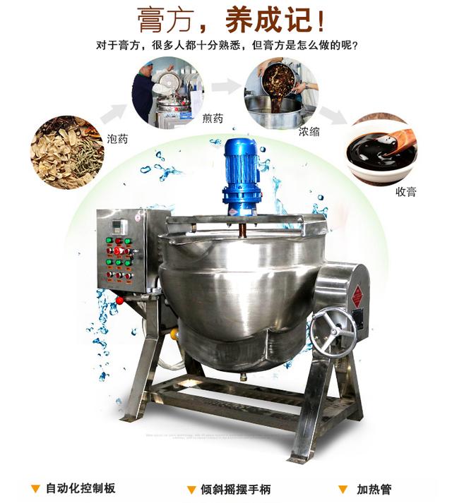 第四步,將三次煎煮的藥液混合濃縮,這個過程是最磨人心性的,這需要操作者不斷的攪動濃縮液,放著粘鍋,尤其是在濃縮到后期的時候,藥液中的水份越來越少,很多原藥都是植物質地,往往含有大量的植物多糖,這樣就會使?jié)饪s液越來越濃稠。